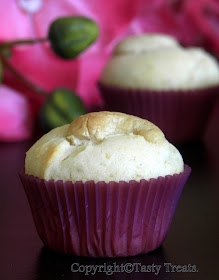 Googled for recipes using mava and saw Aparna's Mava Cake. It was perfect for what I had in mind, no complicated ingredients!! So I put Anushka on her high chair, gave her some fruit to eat and got around baking. Thankfully she was ready for a nap when they were done, so I could take pictures :).