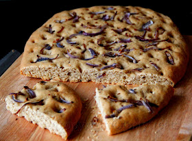 I made this Focaccia bread for the fourth time last week and realized that I never posted about it. I usually buy Focaccia from the farmers market and it is one of the best I've had, but its all white flour and has lots of oil. This one on the other hand is a much lighter and healthier bread and I don't feel so guilty if I have one extra serving. Plus, baking your own bread is so much fun! This one makes a wonderful sandwich, pizza and is great with curries and even on its own!.